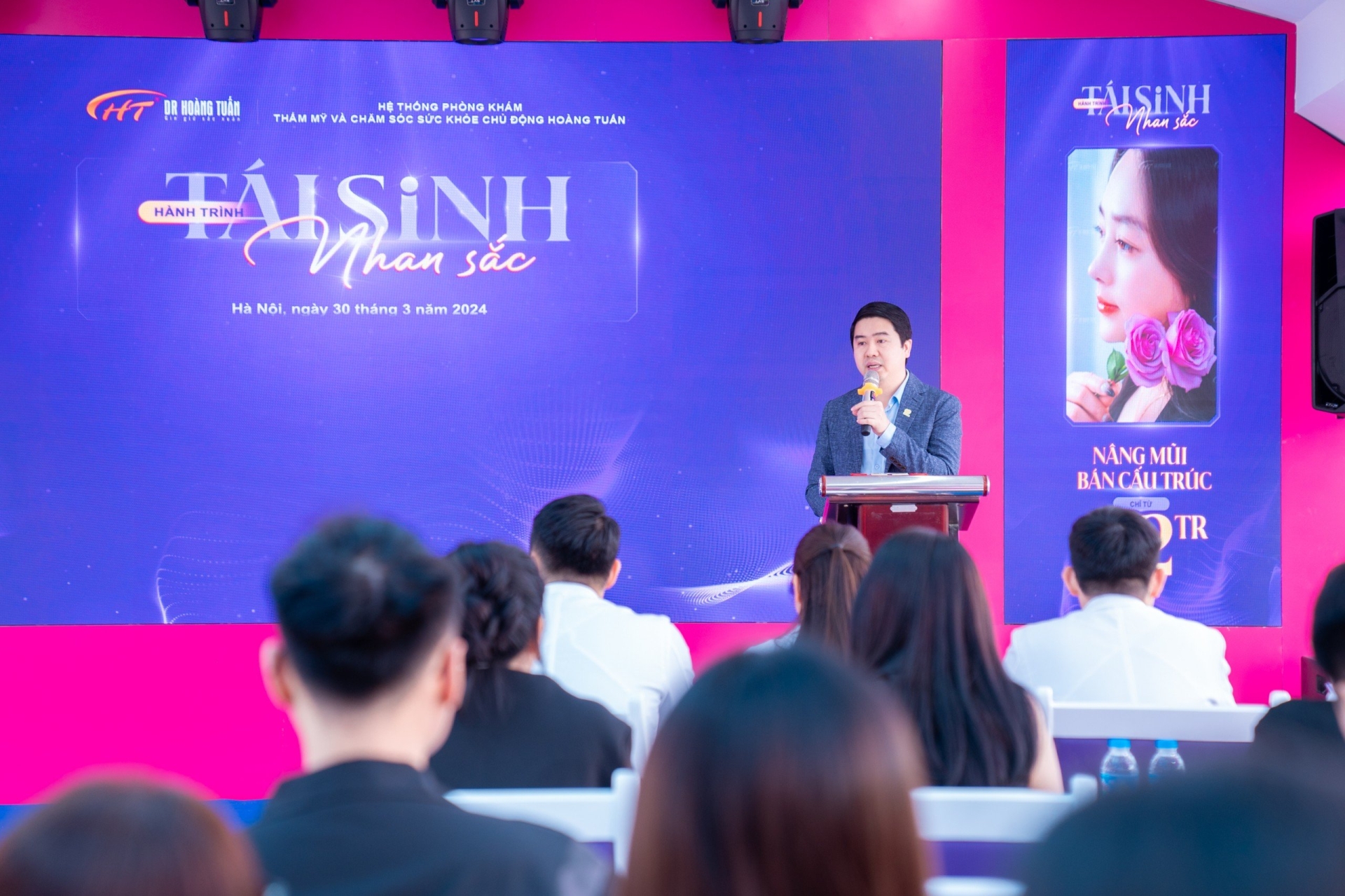 Đúng theo kế hoạch ngày 30/03/2024 Dr Hoàng Tuấn đã diễn ra thành công sự kiện “ hành trình tái sinh nhan sắc” vào lúc 9h tại Tầng 7 - Phòng khám đa khoa Hoàng Tuấn Hà Đông, cùng với sự góp mặt của người đứng đầu Tiến sĩ, bác sĩ Hoàng Thanh Tuấn và Bác sĩ Nguyễn Kim Thành cùng với gần 100 khách hàng tham dự.